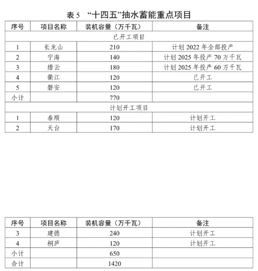 有序發(fā)展抽水蓄能電站。積極推進(jìn)長(zhǎng)龍山、寧海、縉云、衢江、磐安等抽水蓄能開(kāi)工項(xiàng)目的建設(shè),穩(wěn)妥開(kāi)展泰順、天臺(tái)等抽水蓄能電站項(xiàng)目前期工作,適時(shí)啟動(dòng)建德、桐廬站點(diǎn)的前期工作。結(jié)合現(xiàn)有站點(diǎn),合理規(guī)劃布局,積極推動(dòng)新一輪抽水蓄能電站選點(diǎn)工作。加強(qiáng)抽水蓄能電站建設(shè)管理體制、電價(jià)機(jī)制等研究。"十四五"期間,全省抽水蓄能電站力爭(zhēng)新增裝機(jī)容量 340 萬(wàn)千瓦,累計(jì)裝機(jī)容量達(dá)到798 萬(wàn)千瓦。