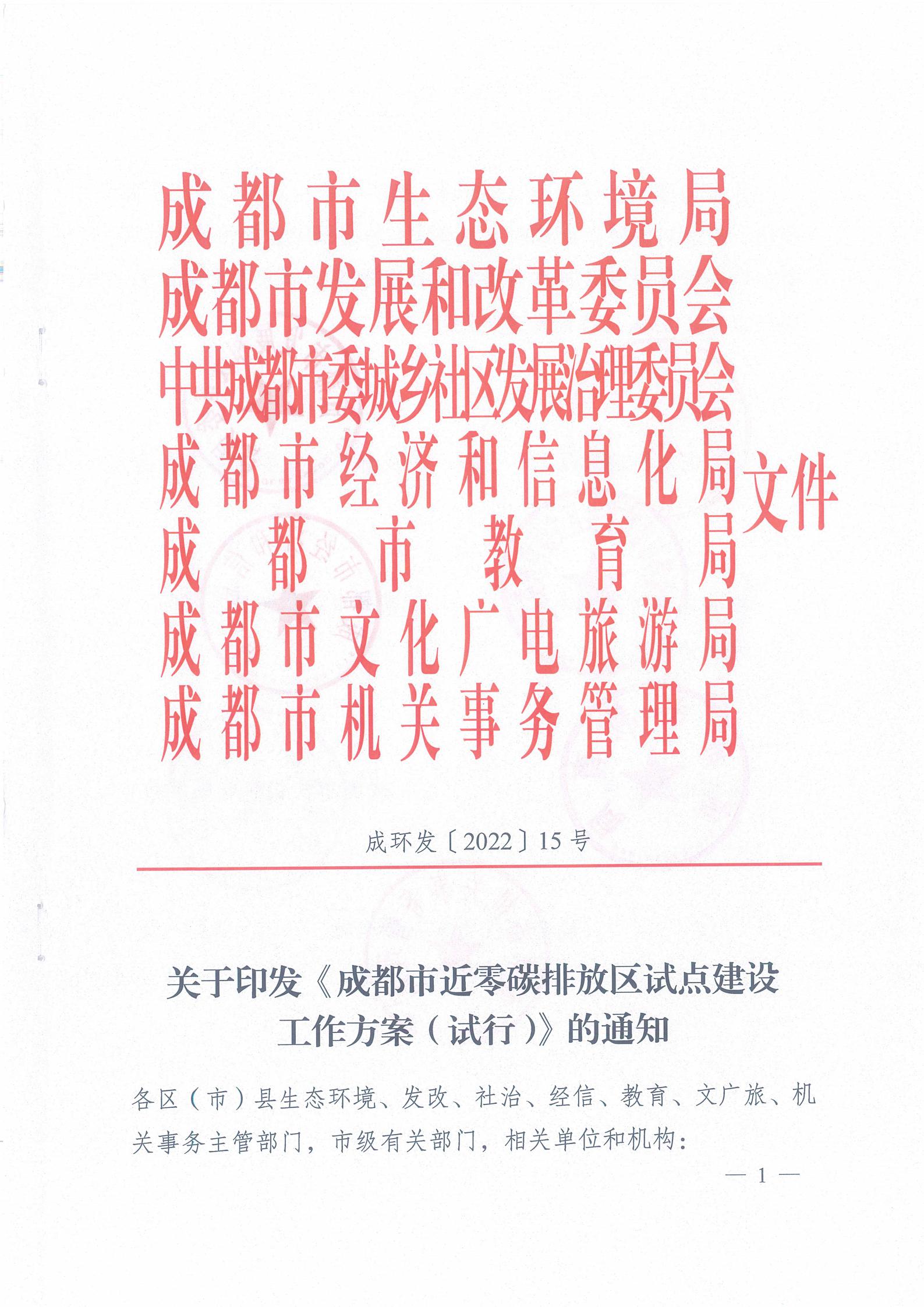 地大熱能地?zé)?多能互補(bǔ)網(wǎng)訊:為貫徹碳達(dá)峰碳中和目標(biāo)愿景,落實積極應(yīng)對氣候變化國家戰(zhàn)略,因地制宜探索近零碳發(fā)展模式,近日,成都市生態(tài)環(huán)境局會同市發(fā)改委、市委社治委、市經(jīng)信局、市教育局、市文廣旅局、市機(jī)關(guān)事務(wù)局聯(lián)合印發(fā)《成都市近零碳排放區(qū)試點建設(shè)工作方案(試行)》,并就2022年度試點建設(shè)申報工作作出安排部署。