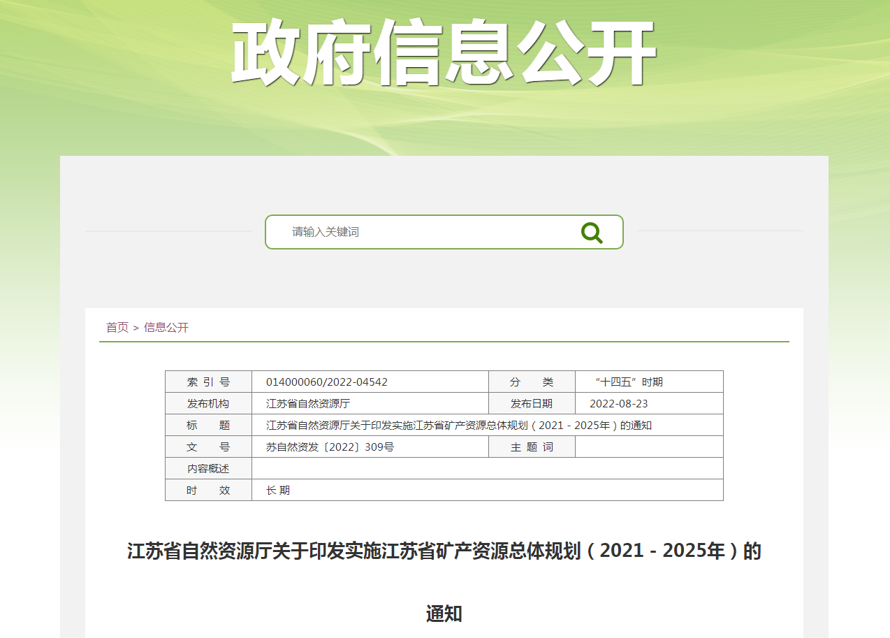地大熱能地?zé)崮荛_發(fā)利用:《江蘇省礦產(chǎn)資源總體規(guī)劃(2021-2025年)》(以下簡(jiǎn)稱《規(guī)劃》)業(yè)經(jīng)自然資源部批準(zhǔn),并經(jīng)江蘇省政府同意,近日印發(fā)。