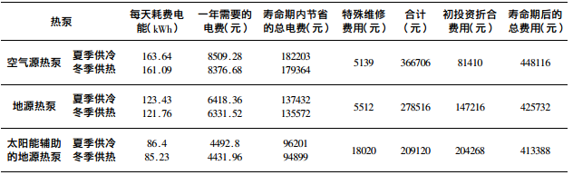 調查表明,在整個壽命期之內,一般使用者都會更換一次壓縮機,按照研究的數(shù)據(jù),為了提高整個系統(tǒng)的效率,壓縮機大多在壽命期的第14年更換,使用更高效昂貴的壓縮機。地大熱能地源熱泵事業(yè)部專家認為考慮到本文研究的熱泵系統(tǒng)冷量接近,認為更換壓縮機對于費用比較不產生影響。