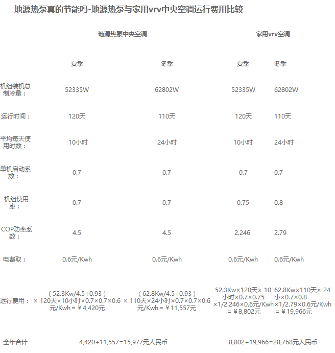 地源熱泵地源熱泵真的節(jié)能嗎-地源熱泵與一般空調(diào)運行費用對比