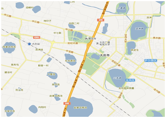 大慶市位于黑龍江省西部,松遼盆地中央凹陷區(qū)北部。市區(qū)地理位置北緯45°46'至46°55',東經(jīng)124°19'至125°12'之間,東與綏化地區(qū)相連,南和吉林省隔江相望,西部及北部與齊齊哈爾市接壤。是中國(guó)最大的陸上油田和重要的石油化工基地。