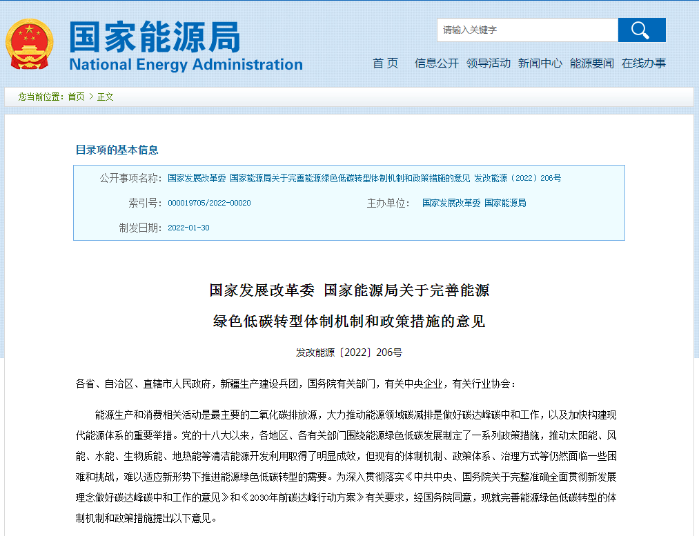 能源生產(chǎn)和消費相關(guān)活動是最主要的二氧化碳排放源,大力推動能源領(lǐng)域碳減排是做好碳達峰碳中和工作,以及加快構(gòu)建現(xiàn)代能源體系的重要舉措。黨的十八大以來,各地區(qū)、各有關(guān)部門圍繞能源綠色低碳發(fā)展制定了一系列政策措施,推動太陽能、風(fēng)能、水能、生物質(zhì)能、地熱能等清潔能源開發(fā)利用取得了明顯成效,但現(xiàn)有的體制機制、政策體系、治理方式等仍然面臨一些困難和挑戰(zhàn),難以適應(yīng)新形勢下推進能源綠色低碳轉(zhuǎn)型的需要。為深入貫徹落實《中共中央、國務(wù)院關(guān)于完整準確全面貫徹新發(fā)展理念做好碳達峰碳中和工作的意見》和《2030年前碳達峰行動方案》有關(guān)要求,經(jīng)國務(wù)院同意,現(xiàn)就完善能源綠色低碳轉(zhuǎn)型的體制機制和政策措施提出以下意見。