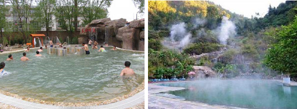 熱水溫泉地處老圖山脈東緣山麓,分布面積為0.42平公里,日最大可采儲(chǔ)量1800~2100噸,中心孔深503米,自流水溫高達(dá)當(dāng)?shù)胤悬c(diǎn)97℃,是全國(guó)水溫最高的溫泉之一。泉水中含有碳酸氯鈉、硫化氫、二氧化硅、氡、氟、碘、硼、銅、銀、鉀、鈦、鈄、鎂、鋰、鈣等卜幾種化學(xué)物質(zhì)及微量元素,對(duì)神經(jīng)衰弱、高血壓、糖尿病、皮膚病、胃病、布氏桿菌癇、多發(fā)性神經(jīng)炎、增生性脊柱炎、氣管炎等30多種常見疾病有很好的療效和較強(qiáng)的保健作用。