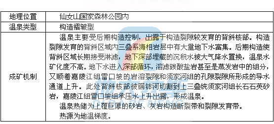 川東仙女山溫泉風景仙女山溫泉地處達州市仙女山腳的銅缽河畔、仙女山國家森林公園,距平灘場鎮(zhèn)1公里。據(jù)勘測,該溫泉水質(zhì)優(yōu)良,水溫適宜,流量大并且穩(wěn)定,富含 多種對人體有益的微量元素和礦物質(zhì)。其中硒和鍶的含量超過國家級規(guī)定的標準,對人體具有較好的保健功能。經(jīng)預(yù)測,該溫泉可達國家級溫泉標準,開發(fā)的前景廣闊,開發(fā)價值高。規(guī)劃將溫泉水引至對巖竹海中進行開發(fā),新建接待服務(wù)設(shè)施,開展游泳、沖浪、醫(yī)療保健、休閑度假等活動項目。擴建平灘經(jīng)溫泉到馬家的公路,新建景區(qū)游道,完善電力設(shè)施、通訊設(shè)施和提高電視收視效果,達到日接待能力上千人次的規(guī)模。