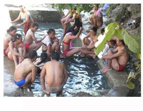 云南躍進橋溫泉風(fēng)景澡堂會的熱水最高達70-80度,由于是自然溫泉,含有多種礦物質(zhì)和稀有金屬元素,對人體的某些疾患有特殊的療效,因而慕名前往洗浴的客人遠到西藏也不乏大有人在,只是現(xiàn)在的時間主要是周邊的人們,到三、四月份就會有更多遠方的西域者陸續(xù)到來。不少洗浴者一洗就是十天半月,更有甚者能洗兩到三個月,目的是治病,據(jù)說還真有不少人治好了疑難雜癥,不然的話怒江“澡堂會”怎么會在印度、尼泊爾、巴基斯坦、新加坡、馬來西亞甚至美國等地聞名遐邇。